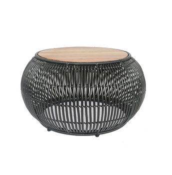 Hygge Table BL with Natural Wood Top Durable Metal Frame Modern Outdoor Decorative Table for Cafe Settings